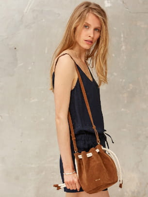 Petit sac en bandoulière en croûte de cuir avec lien en corde de Sézane