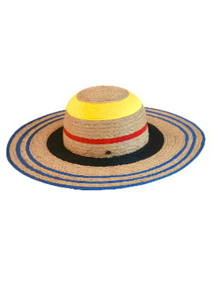 Chapeau de paille naturelle rayé bleu jaune te rouge de JC de Castelbajac