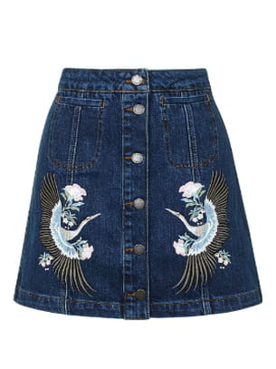 Jupe bleue trapèze brodée de MOTO chez Topshop