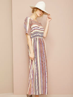 Robe longue à manches courtes imprimée en bourrette de soie de Mes Demoiselles