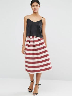 Jupe de bal de fin d'année rayée coupe mi-longue à rayures rose et lie-de-vin de Asos