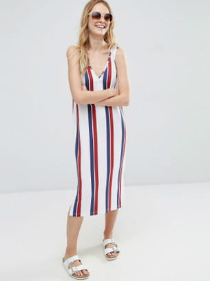 Robe mi-longue à rayures bordeaux et bleu marine de Asos