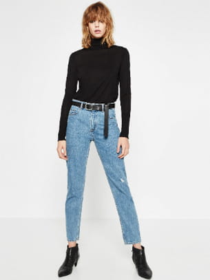 Jean bleu délavé taille haute légèrement resseré sur la cheville de Zara