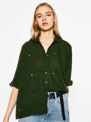Chemise large vert kaki brodée de quelques petites étoiles blanches de Zara