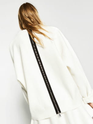 Sweat-shirt blanc large et long droit en maille avec zip dans le dos de Zara