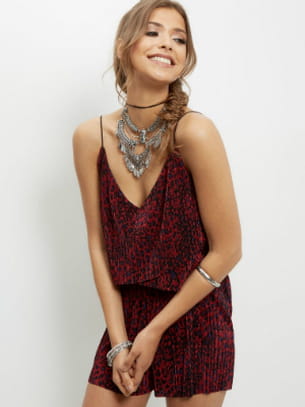 Combinaison short rouge plissée à imprimé animal avec superpositions de New Look