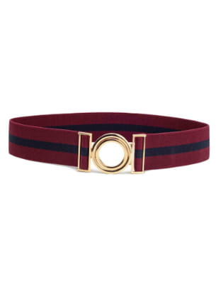Ceinture bordeaux avec rayure bleu marine et boucle dorée de H&M