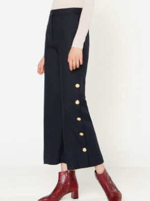 Pantalon large en tissu semi rigide taille haute bleu marine de Uterqüe