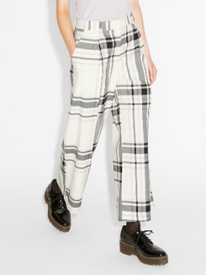 Pantalon taille haute large 7/8ème çà carreaux blanc et noir de Monki