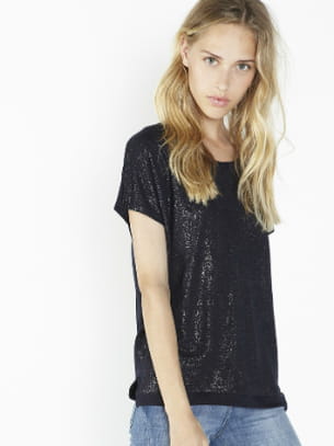 Top bleu marine à manches courtes effet paillettes de Berenice