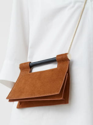 Sac bandoulière en tissu façon fourrure camel et anse chaîne dorée de Mango
