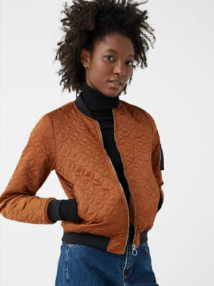 Blouson court sans col couleur marron moyen avec extrémités noires élastiques de Mango