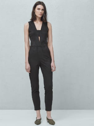 Combinaison ajourée noire en polyester avec col V et sans manches de Mango