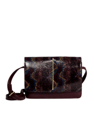 Sac bandoulière en cuir façon python bordeaux de Bocage