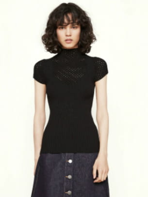 Top en maille côtelée avec jours noir de Maje