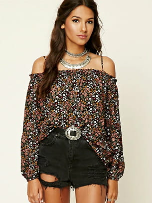 Top à manches longues et épaule dénudées imprimé à fleurs de Forever 21