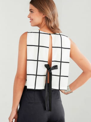 Top à nouer dans le dos à carreaux noir et blanc de 3 Suisses Collection