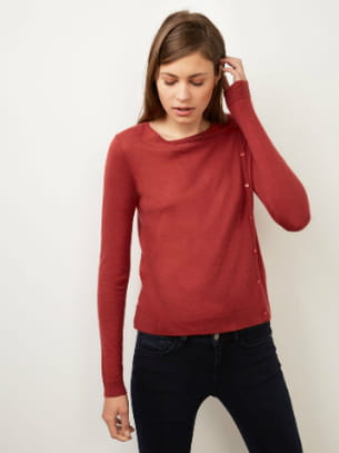 Gilet brique en cachemire avec col bateau et boutonnage décalé sur le côté de Comptoir des Cotonniers