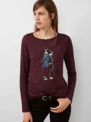 Top aubergine à manches longues avec imprimé "Léon" de Comptoir des Cotonniers