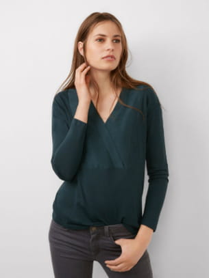 Top pétrole en coton avec encolure croisée en soie de Comptoir des Cotonniers