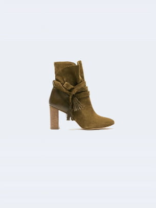 Boots vertes en cuir et daim avec liens et pompons autour de la cheville de Ba&sh