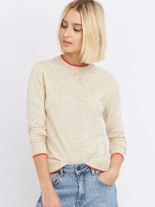 Pull-over écru en maille fine liseré orange de Light Before Dark chez Urban Outfitters
