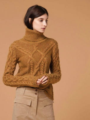 Pull fauve en maille irlandaise avec col roulé de Sessùn