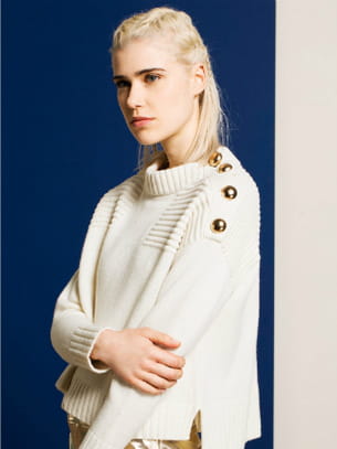 Pull crème en laine avec boutonnage doré sur l'épaule et fentes sur les côtés de Tara Jarmon