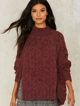 Pull bordeaux à grosse maille avec zips et col cheminé de Nasty Gal