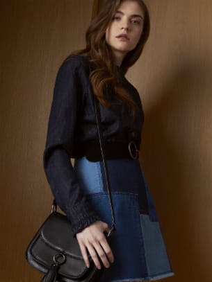 Chemise en jean bleu foncé avec manches et col froufrou de Camaïeu