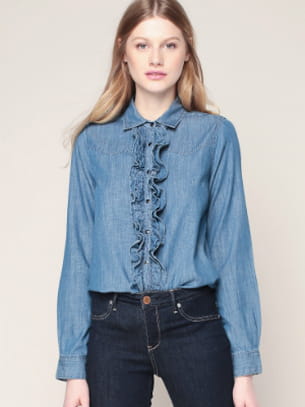 Chemise en jean à jabot bleu clair de Kookaï chez Monshowroom.com