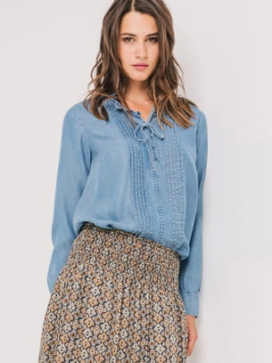 Chemise en jean plissée avec cordon de Promod
