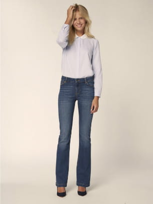 Pantalon en denim bleu délavé et légèrement évasé sur le bas de Pablo