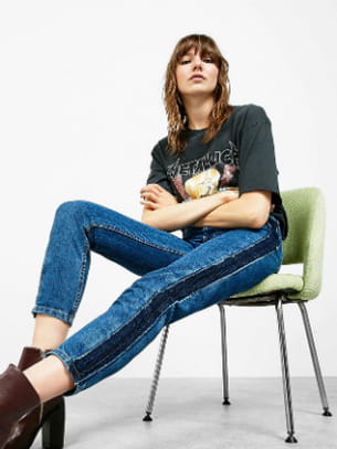 Pantalon en denim bleu avec bandes contrastantes sur les côtés extérieurs de Bershka