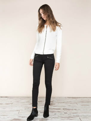 Pantalon en denim noir coupe slim avec détails zippés sur le devant de Suncoo
