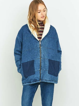 Veste large zippée en jean avec col et intérieur en fausse fourrure de BDG sur Urban Outfitters