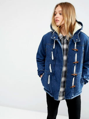 Manteau court à capuche en jean avec fourrure synthétique à l'intérieur de Asos