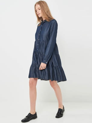 Robe courte évasée boutonnées à volants et à manches longues en jean brut de Les Petites...