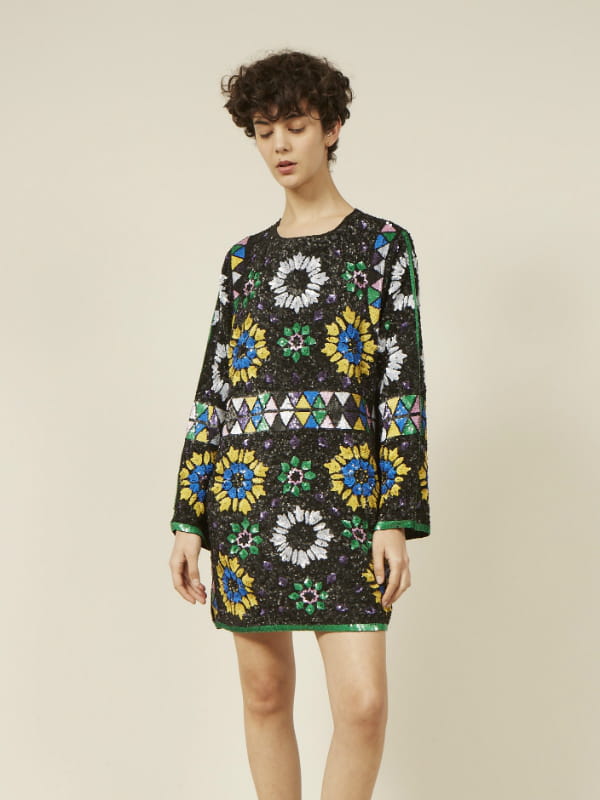 Robe noire brodée de sequins avec manches légèrement évasées d'Antik Batik