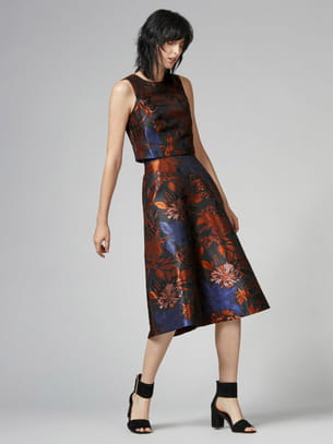 Top et jupe jacquard et sandales noires de Warehouse © Warehouse