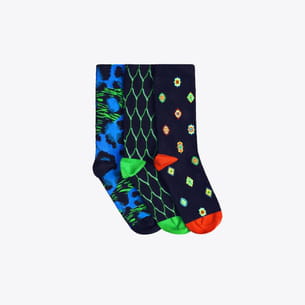 Lot de chaussettes imprimées bleu, vert et orange © H&M X Kenzo