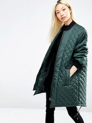Veste longue matelassée verte avec col et emmanchures noirs style bomber de Asos