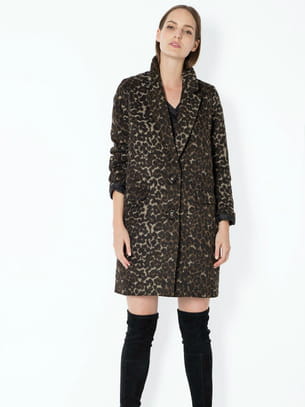 Manteau mi-long imprimé léopard coupe masculine de Grace & Mila