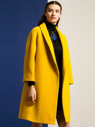 Manteau jaune safran coupe ample masculine et manches 3/4 de Tara Jarmon