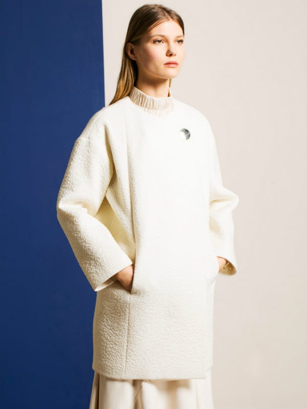 Manteau mi-long sans col, écru, forme ample en laine de Tara Jarmon