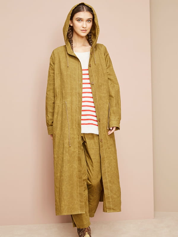 Manteau loose long à capuche en coton ciré kaki Mes Demoiselles