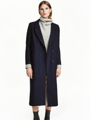 Manteau en laine mélangée bleu foncé à rayures de H&M