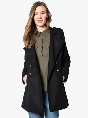 Manteau mi-long noir avec double rangée de boutons dorés de Gémo