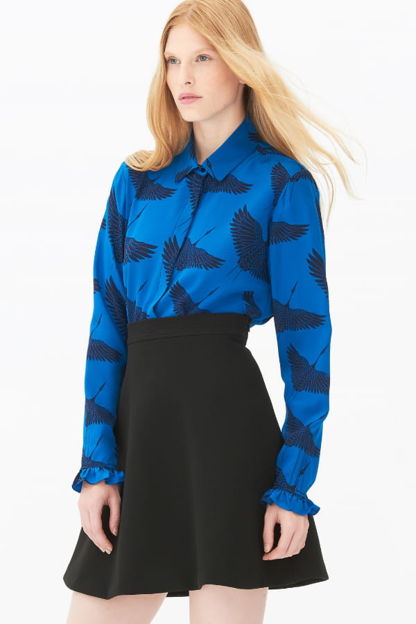 Chemise imprimée de grues noire et bleu électrique de Sandro