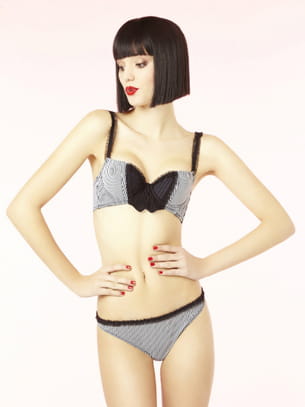 Parure noire et blanche à rayures avec soutien-gorge push up et string tanga de Chantal Thomass